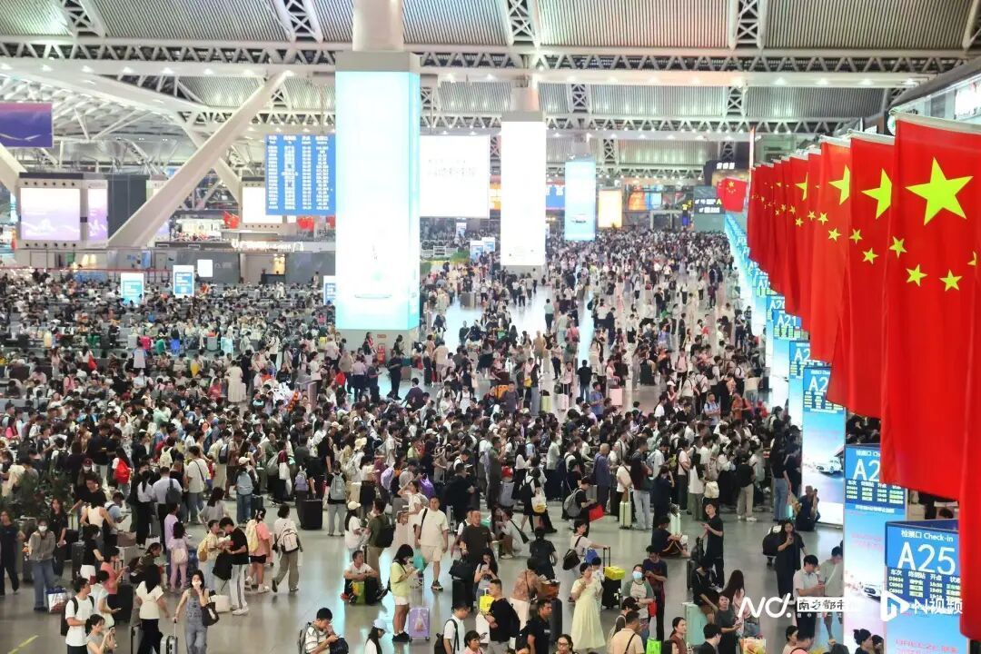 2025年国庆首日,广州南站单日到发旅客约92.2万人次,其中发送53.4万人次,到达38.8万人次,再次突破单日到发旅客86.5万人次的历史纪录。
