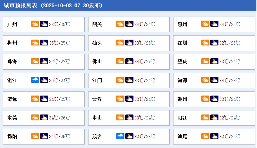 13日白天,我省大部分市县晴到多云为主,局部有(雷)阵雨。最高气温:中北部市县33~35℃,局部36~37℃,其余市县30~33℃。